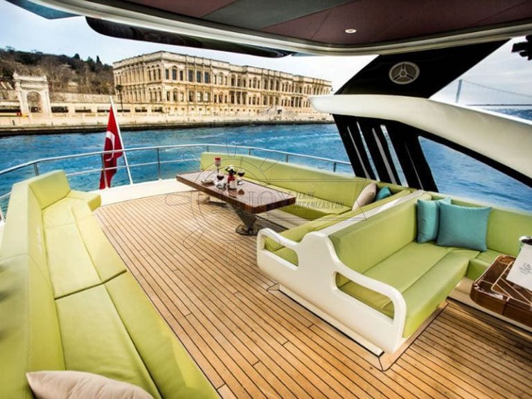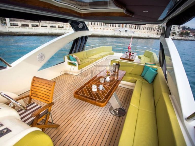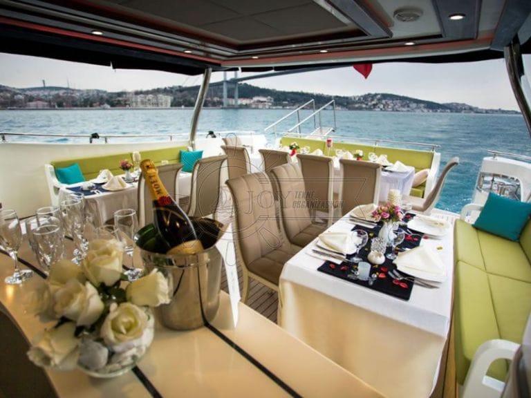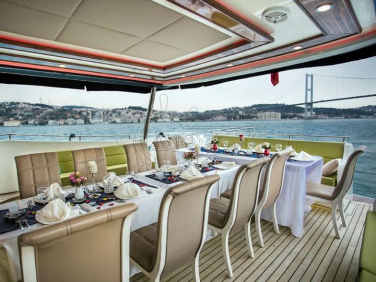 Seçkin konuklar için özel bir deneyim sunan bu lüks kiralık yat, düğün, nişan ve özel kutlama organizasyonları için tercih edilmektedir. Bakımlı iç dekoru, geniş güverte alanı ve profesyonel mürettebatı ile özel gününüzü Boğaz üzerinde taçlandırır.