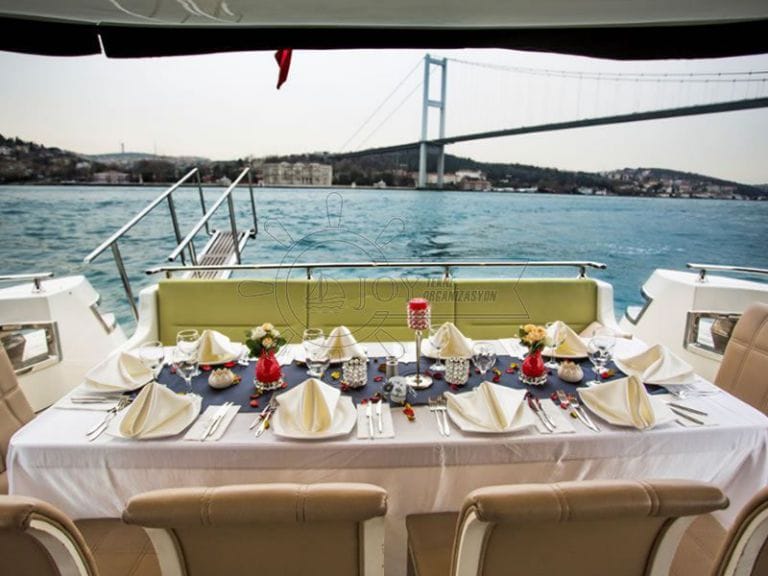 İstanbul Boğazı'nın mavi sularında seyreden bir yatta düğün organizasyonu düzenlemek, çift ve davetliler için hayat boyu hatırlanacak bir deneyim yaratır. Köprüler, tarihi yapılar ve kıyı silüeti eşliğinde gerçekleştirilen düğünler; standart salon törenlerinin sıradanlığını aşarak eşsiz bir romantizm ve heyecan sunar.