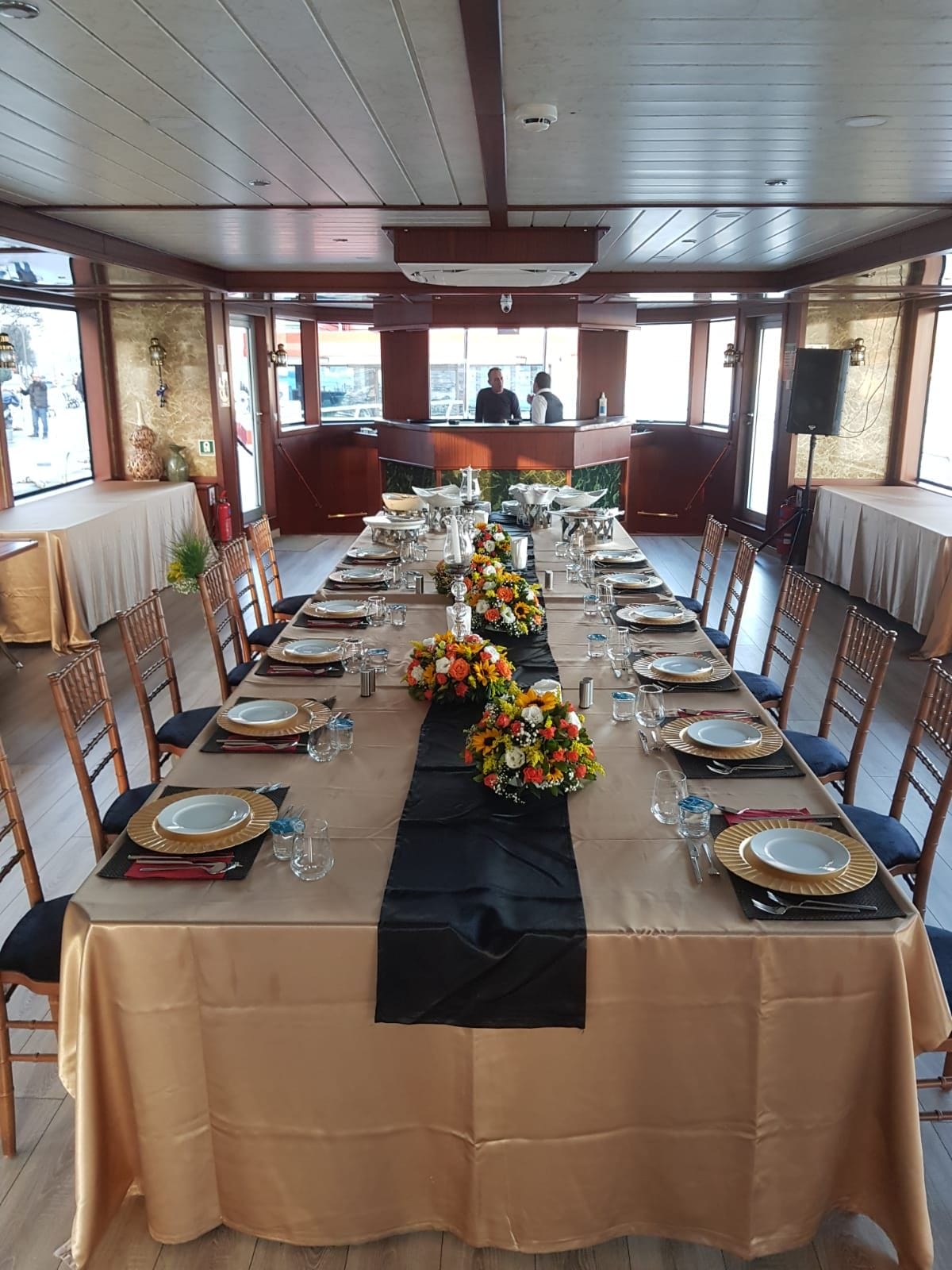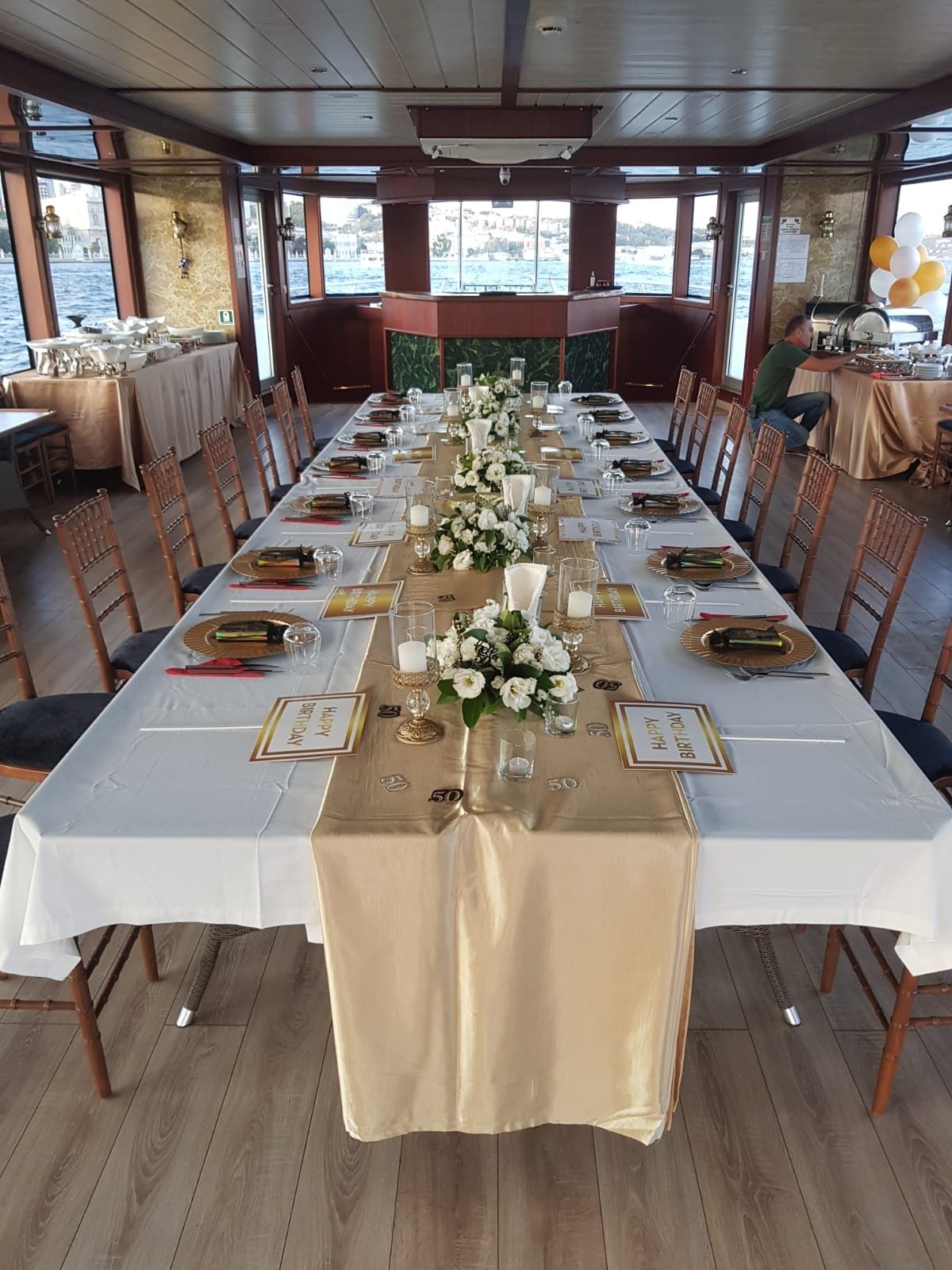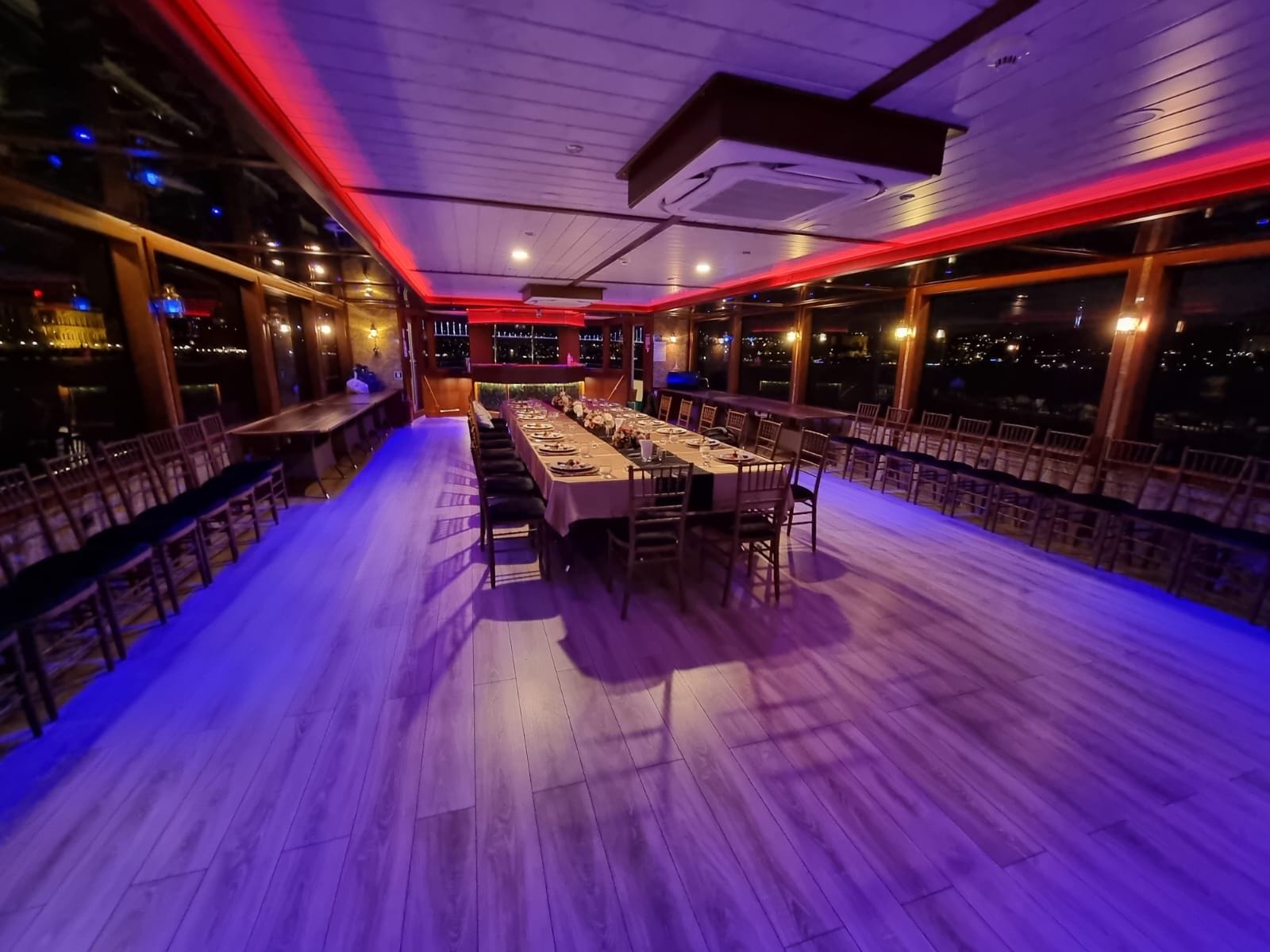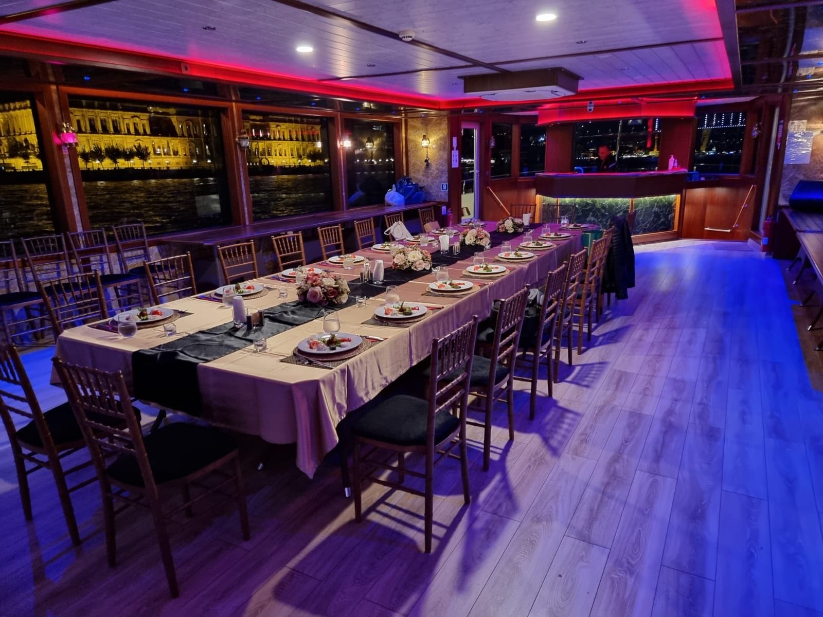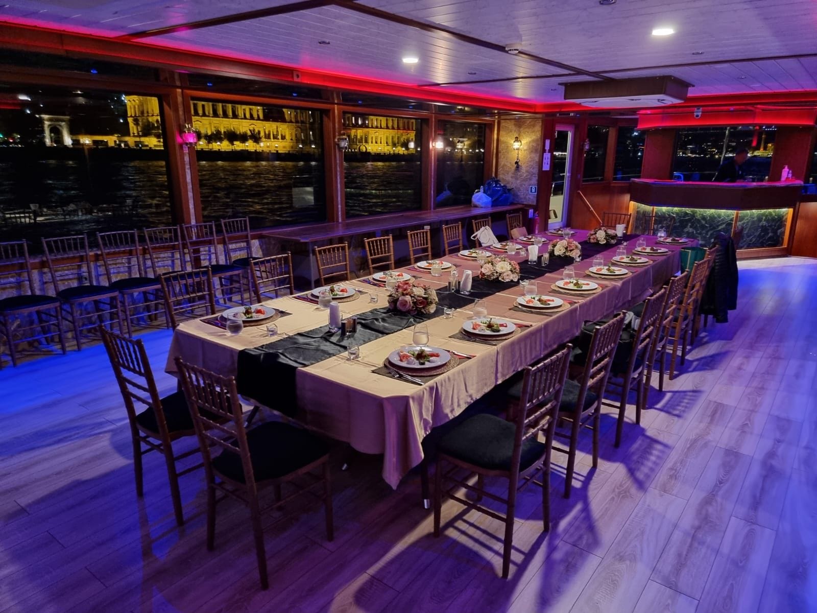 düğün toplantıları, satış düğün töreniları ve bölge müdürleri buluşmaları için İstanbul Boğazı'nda eşsiz bir lokasyon sunan bu tekne, hem sunum hem de yemek düzenlemelerine olanak tanıyan esnek alan konfigürasyonuyla öne çıkar. Boğaz manzarası eşliğinde gerçekleştirilen toplantılar, katılımcıların motivasyonunu ve aidiyetini güçlendirir.