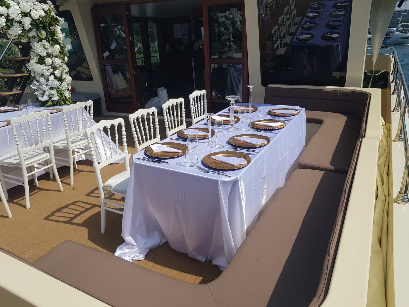 Bu tekneyi çiftlerin özel organizasyonu için rezerve etmek, kapasite ve fiyat bilgisi almak üzere Teknede Düğün ekibiyle iletişime geçin. Yıllık deneyimimiz ve kapsamlı tekne filomuzla özel düğün etkinliğinizi İstanbul Boğazı'nda hizmetinize sunmaktan memnuniyet duyarız.