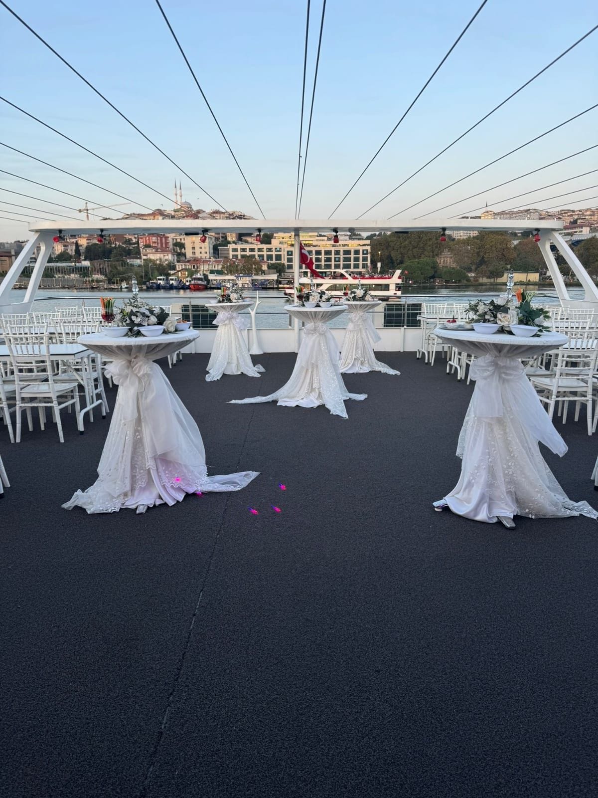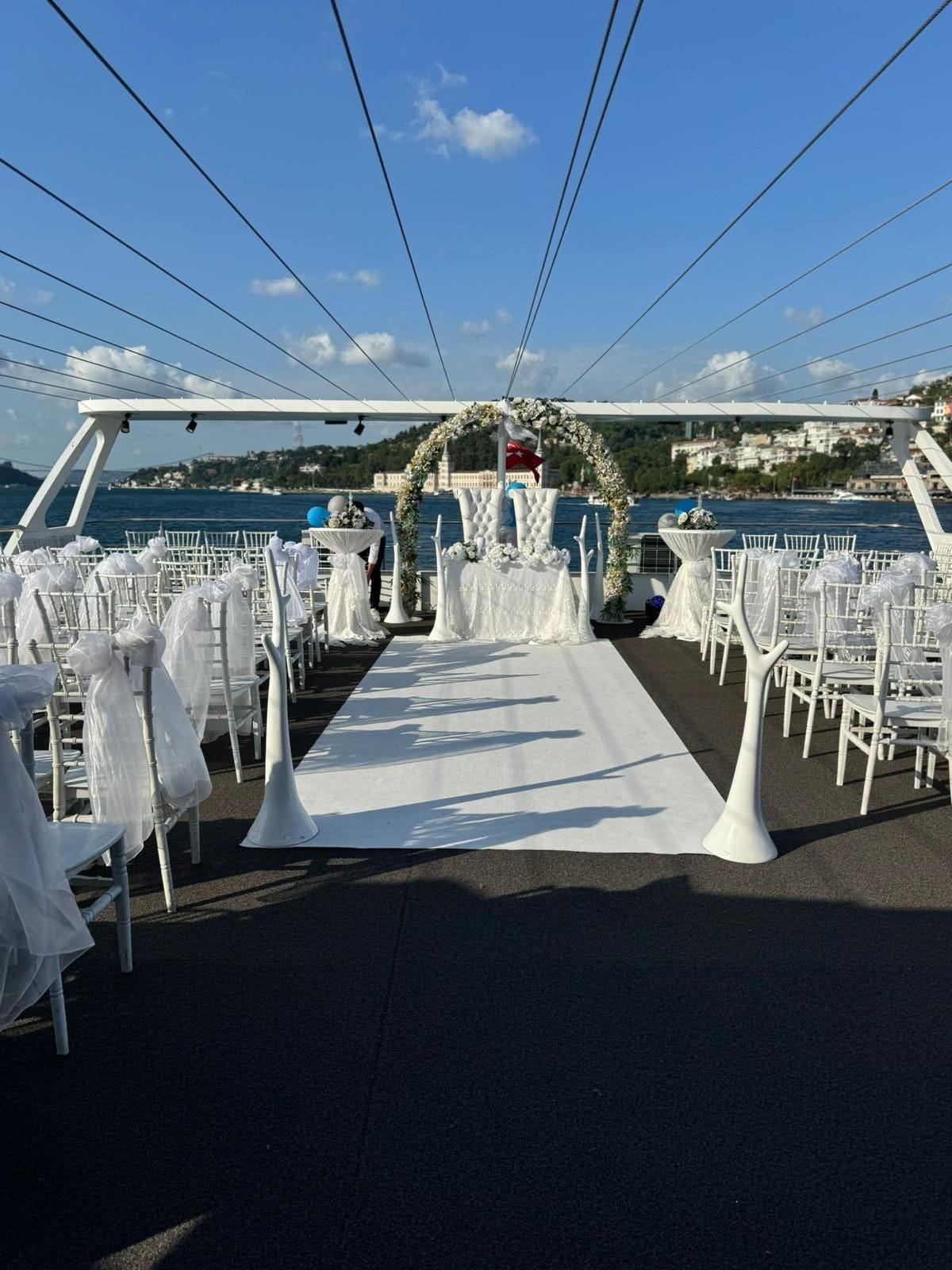 Bu tekneyi çiftlerin özel organizasyonu için rezerve etmek, kapasite ve fiyat bilgisi almak üzere Teknede Düğün ekibiyle iletişime geçin. Yıllık deneyimimiz ve kapsamlı tekne filomuzla özel düğün etkinliğinizi İstanbul Boğazı'nda hizmetinize sunmaktan memnuniyet duyarız.