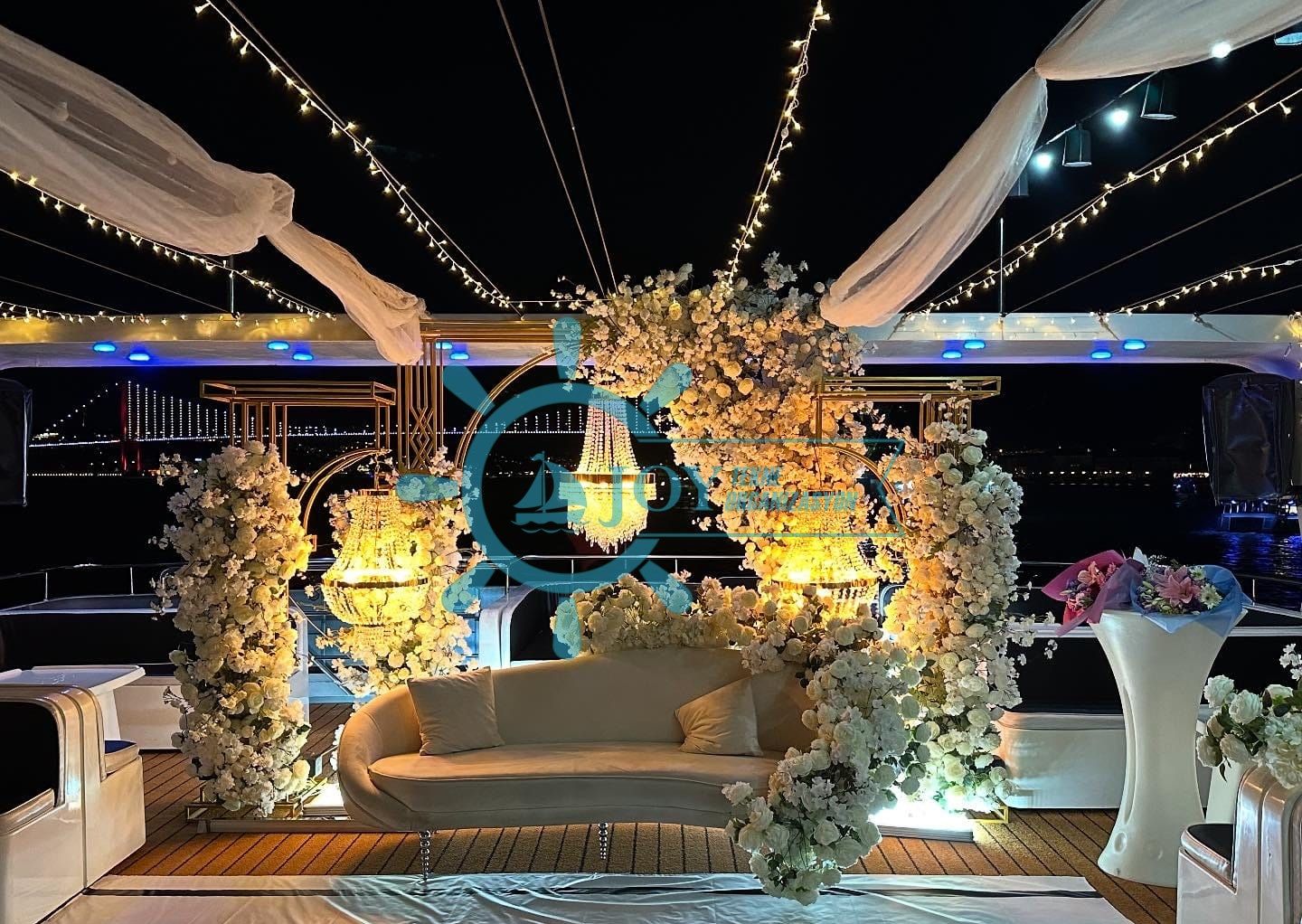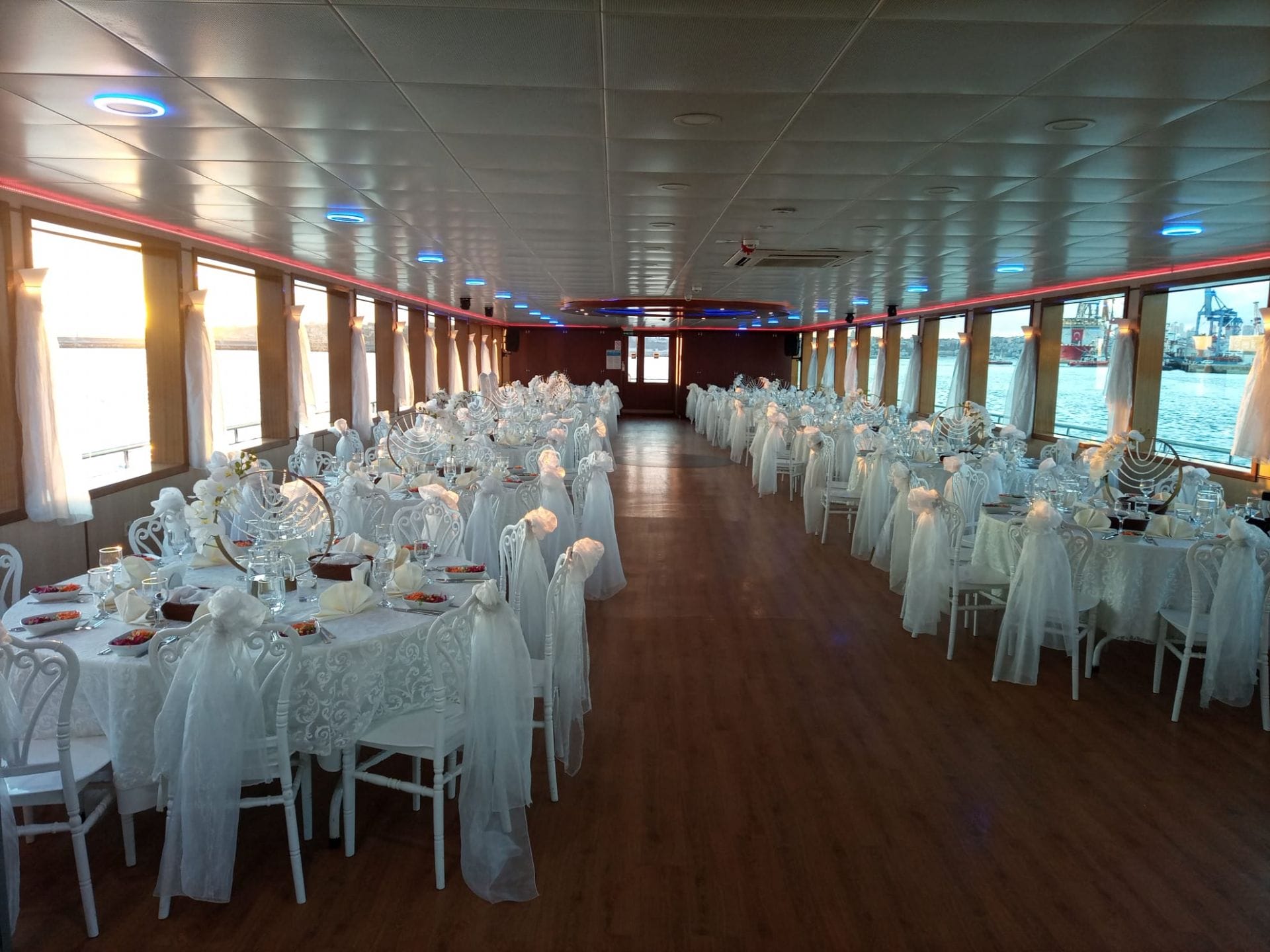 Düğün töreni, nişan partisi, kına gecesi, bekarlığa veda ve after party etkinlikleri bu teknede başarıyla düzenlenebilir. Romantik masa düzeninden dans pistine, resmi törenin ardından eğlenceli kutlamaya kadar farklı organizasyon biçimleri için alan düzenlemesi yapılabilir.