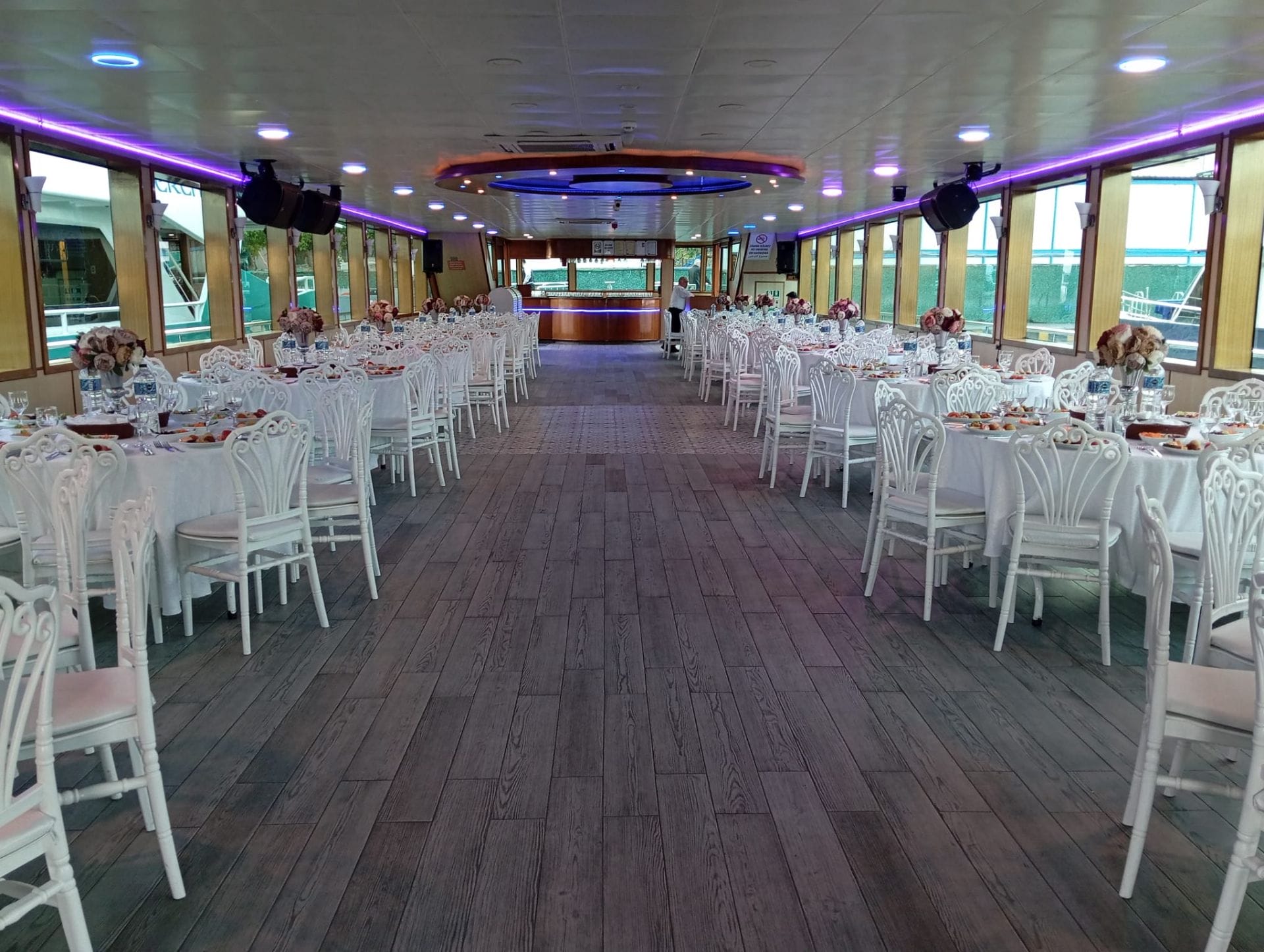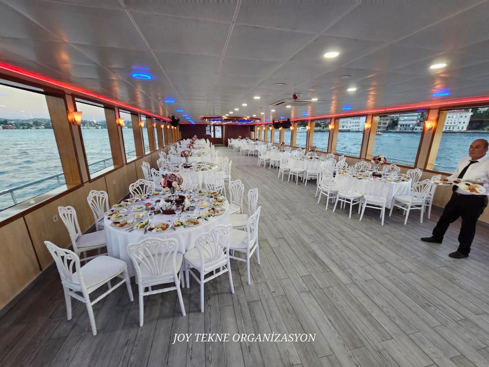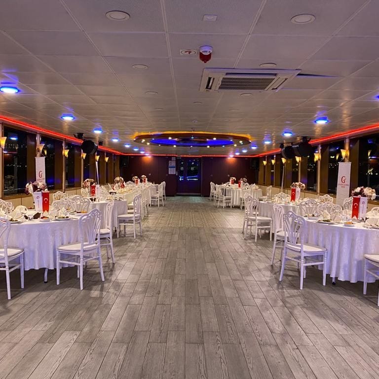İstanbul Boğazı'nın en büyük etkinlik teknelerinden biri olan bu tekne, geniş kapalı ve açık güverte alanlarıyla aynı anda yüzlerce misafiri ağırlama kapasitesine sahiptir. Büyük çaplı düğün organizasyonular, gala yemekleri ve dev ölçekte şirket buluşmaları için tercih edilen bu tekne, her ayrıntısıyla profesyonel bir etkinlik deneyimi sunar.