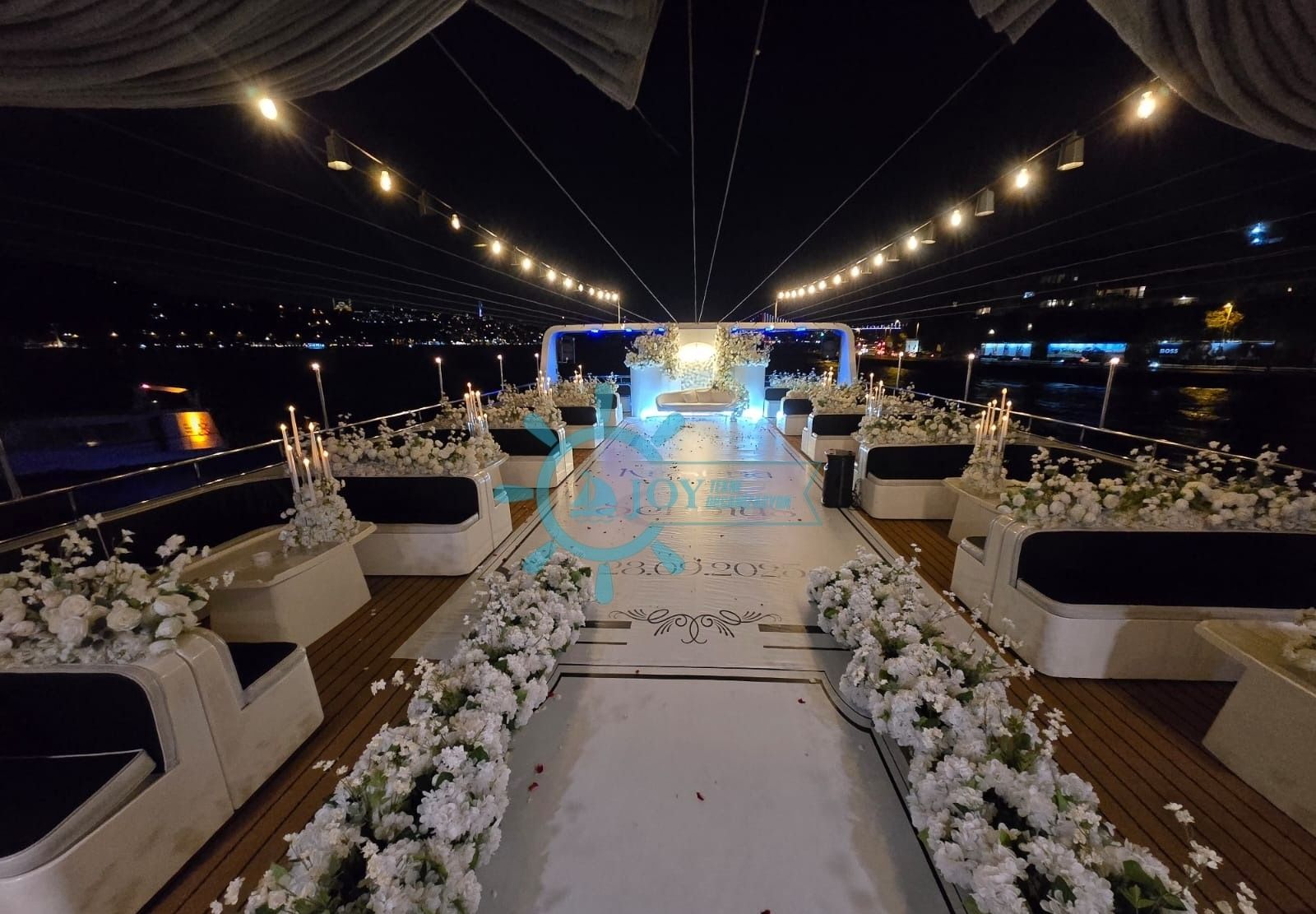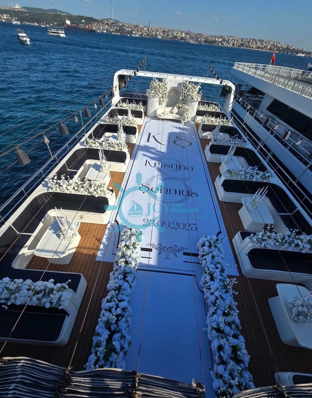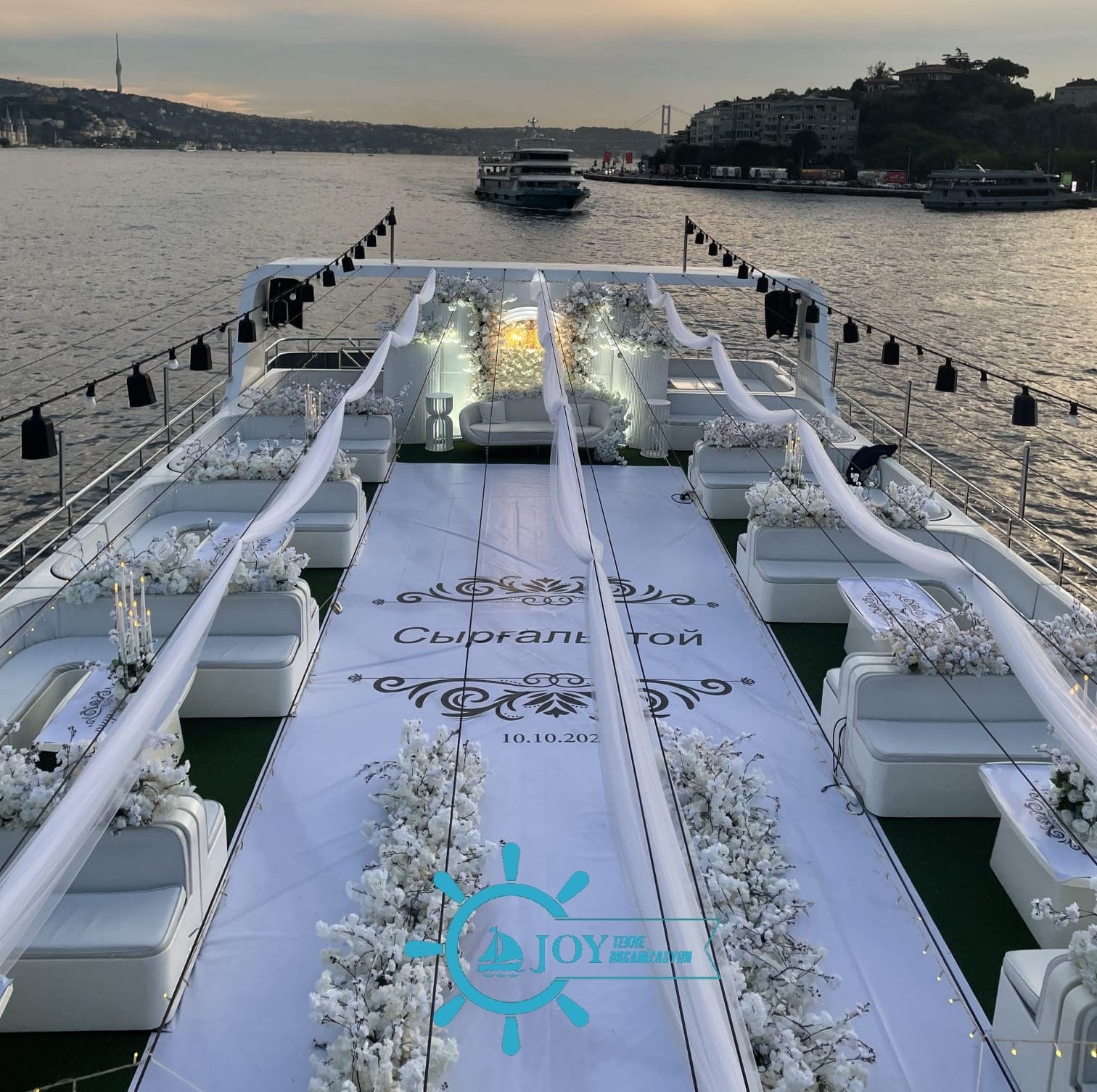 Bu tekneyi çiftlerin özel organizasyonu için rezerve etmek, kapasite ve fiyat bilgisi almak üzere Teknede Düğün ekibiyle iletişime geçin. Yıllık deneyimimiz ve kapsamlı tekne filomuzla özel düğün etkinliğinizi İstanbul Boğazı'nda hizmetinize sunmaktan memnuniyet duyarız.
