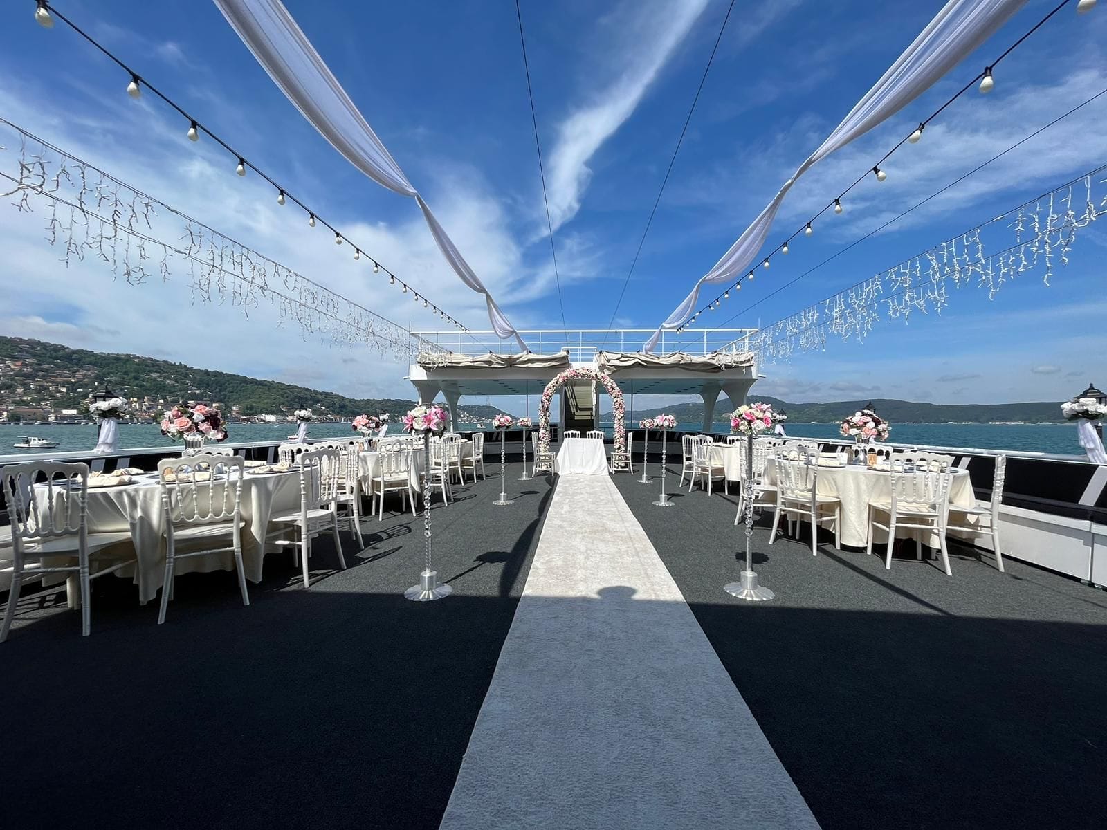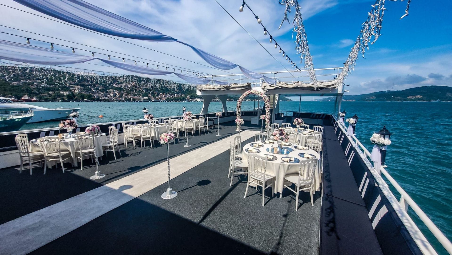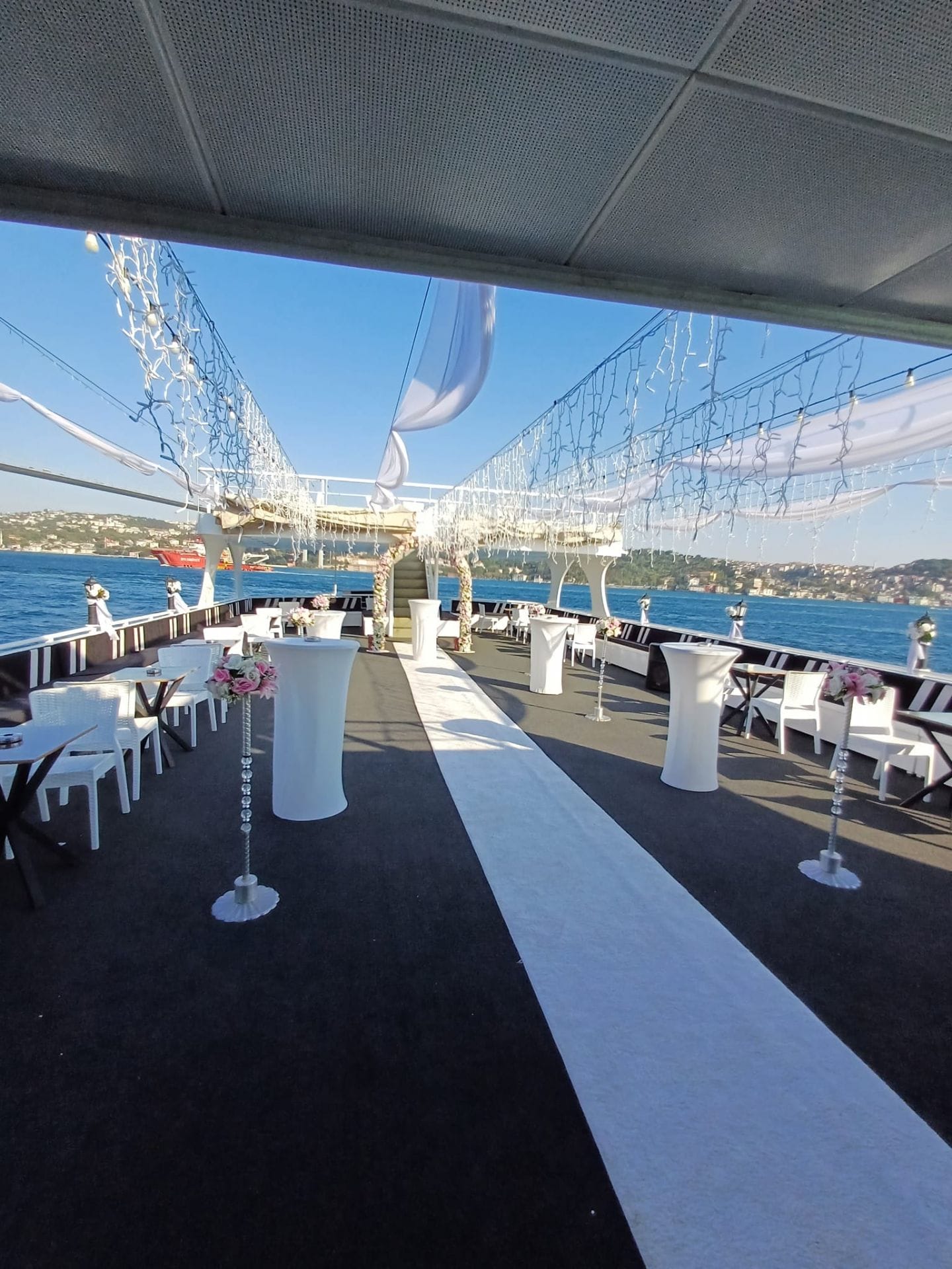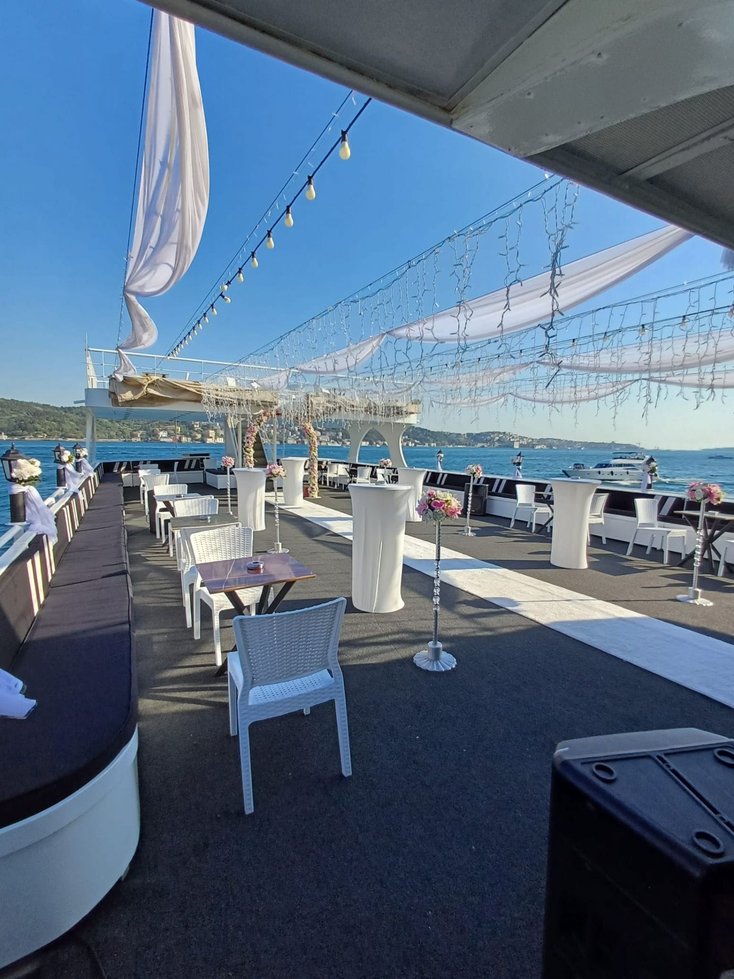 İstanbul Boğazı'nın eşsiz manzarasında düğün, nişan ve özel kutlama organizasyonları için tercih edilen bu tekne, kapalı ve açık güverte alanlarıyla her ölçekte organizasyona uyum sağlar. En özel günlerinizi unutulmaz kılmak için tüm teknik altyapı ve ikram olanakları hazır beklemektedir.