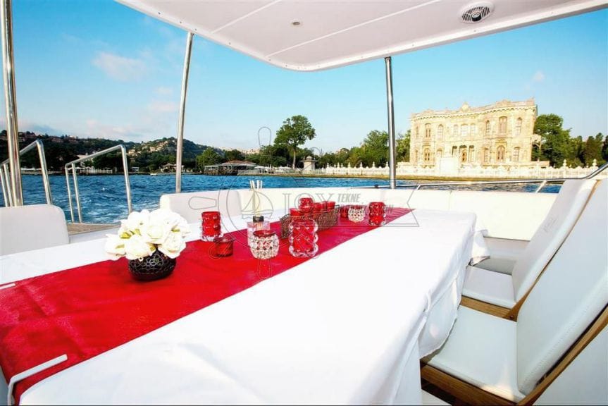 İstanbul Boğazı'nın nefes kesici manzarası eşliğinde çalışanlarınızı veya iş ortaklarınızı ağırlamak için bu yat tercih edilir. Geniş güverte alanı ve kapalı salonu, farklı etkinlik biçimlerine uyum sağlarken misafirlerinize konforlu ve keyifli bir deneyim sunar.