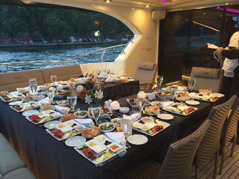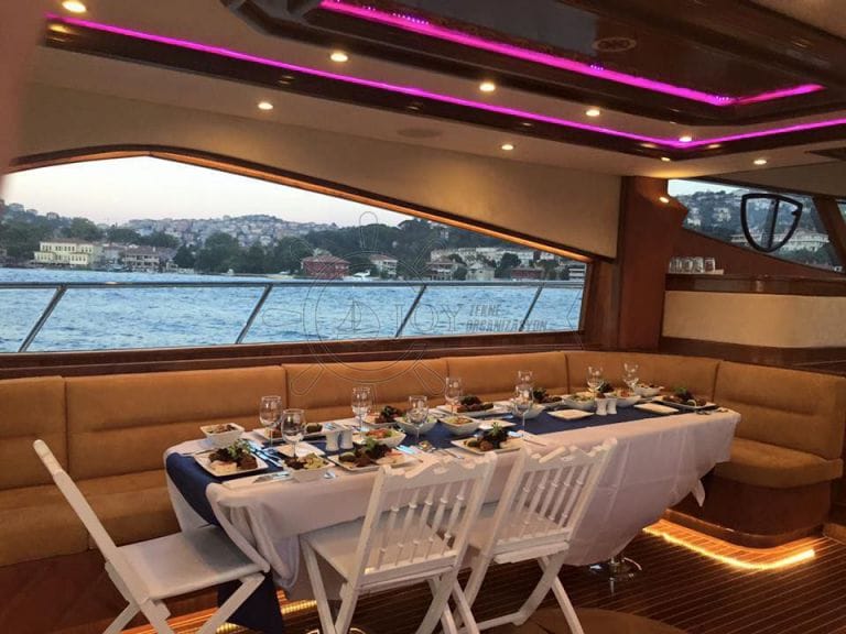 İstanbul Boğazı'nın nefes kesici manzarası eşliğinde çalışanlarınızı veya iş ortaklarınızı ağırlamak için bu yat tercih edilir. Geniş güverte alanı ve kapalı salonu, farklı etkinlik biçimlerine uyum sağlarken misafirlerinize konforlu ve keyifli bir deneyim sunar.
